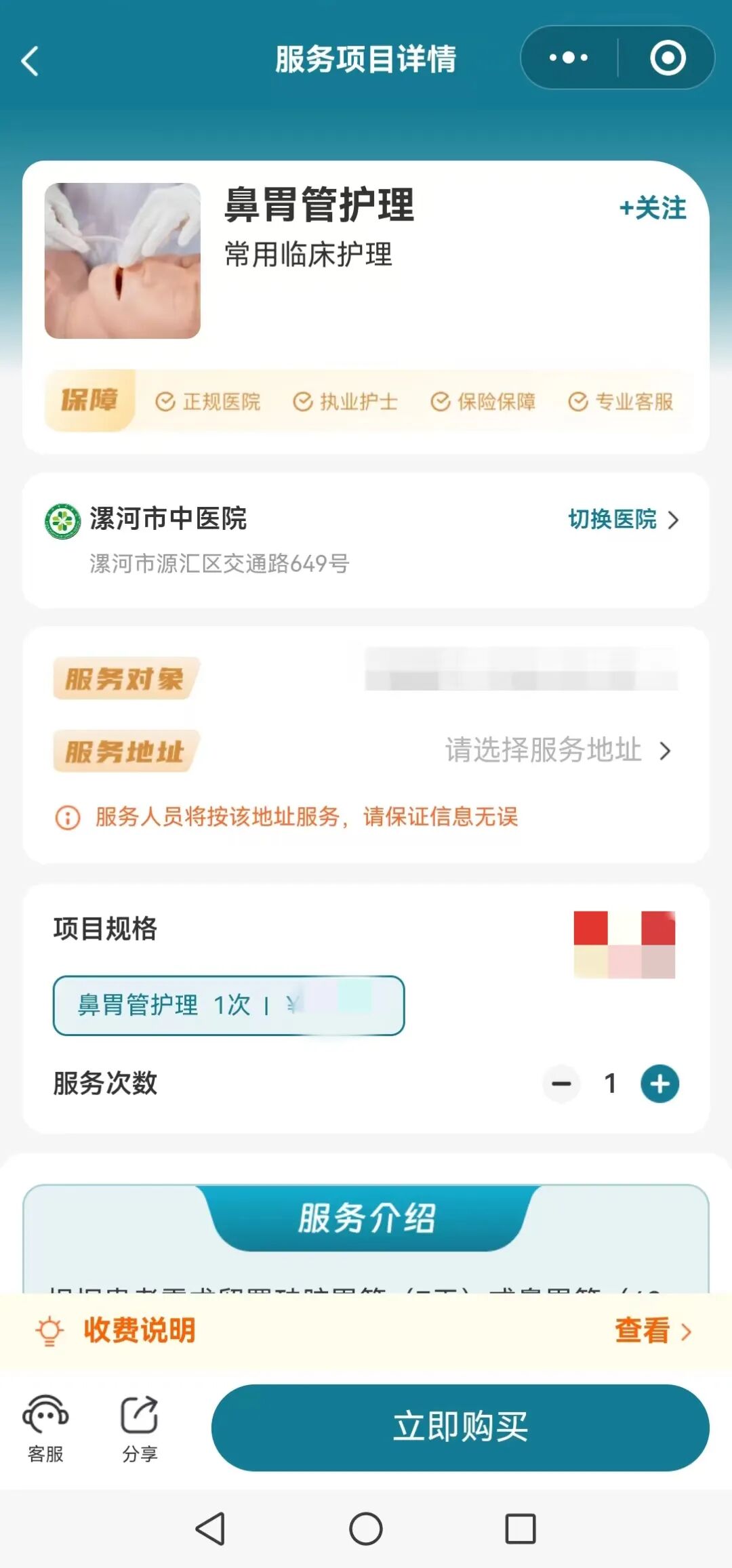 選擇服務(wù): 根據(jù)需求,在平臺上選擇所需的護(hù)理服務(wù)項(xiàng)目,如靜脈采血、更換胃管/尿管、PICC維護(hù)、壓瘡護(hù)理等。