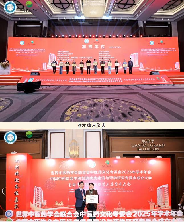 2025 年11月20-23日,世界中醫(yī)藥學會聯(lián)合會中醫(yī)藥文化專委會2025年學術年會、中國中藥協(xié)會中醫(yī)經(jīng)典病房建設與藥物研究專會成立大會暨全國中醫(yī)經(jīng)典聯(lián)盟第三屆學術大會在武漢隆重舉辦。