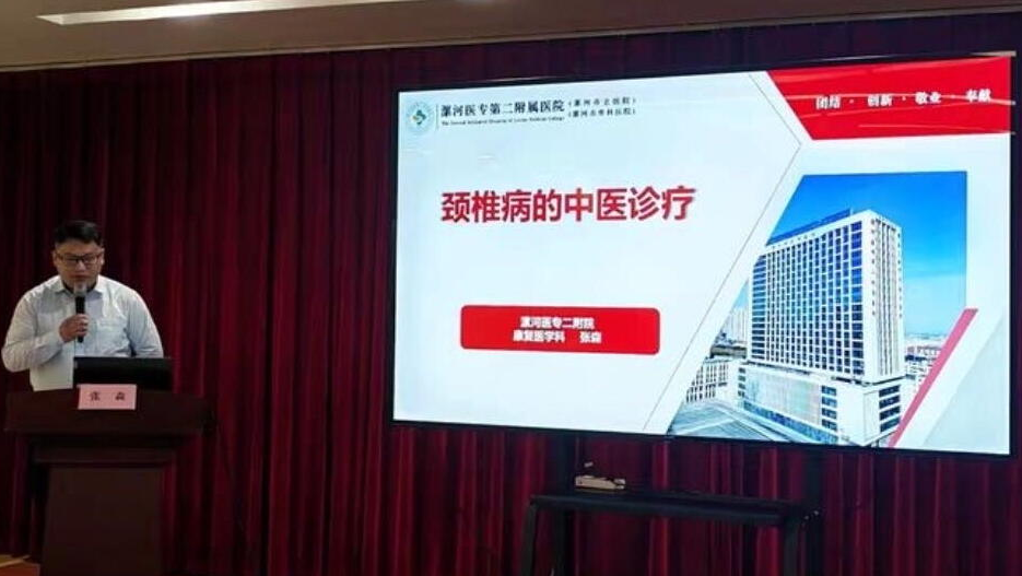 漯河醫(yī)專二附院康復醫(yī)學科主治醫(yī)師張森圍繞《頸椎病的中醫(yī)診療》開始講述。主要診療以“辨證施治、標本兼顧”為原則:辨證常見寒濕阻絡、氣滯血瘀、肝腎虧虛、氣血不足四型,通過望聞問切精準分型;治療以通經活絡、散寒止痛、補益肝腎為核心,常用針灸、中藥內服,配合艾灸、拔罐、牽引等外治法,同時強調避風寒、調姿勢、練功法的日常調護,從根源改善頸部氣血運行與筋骨功能。