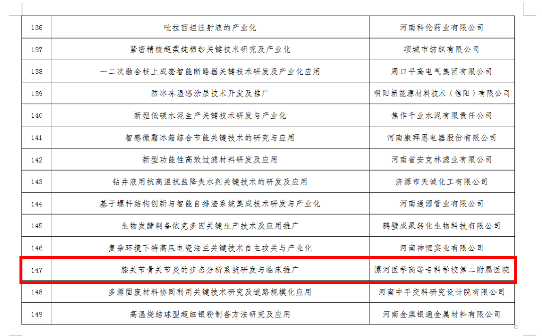 近日,河南省科學(xué)技術(shù)廳公示了2025年度河南省中央引導(dǎo)地方科技發(fā)展資金擬支持項目清單,由漯河醫(yī)專二附院(漯河市骨科醫(yī)院、漯河市立醫(yī)院)申報的“膝關(guān)節(jié)骨關(guān)節(jié)炎的步態(tài)分析系統(tǒng)研發(fā)與臨床推廣”項目成功入選。