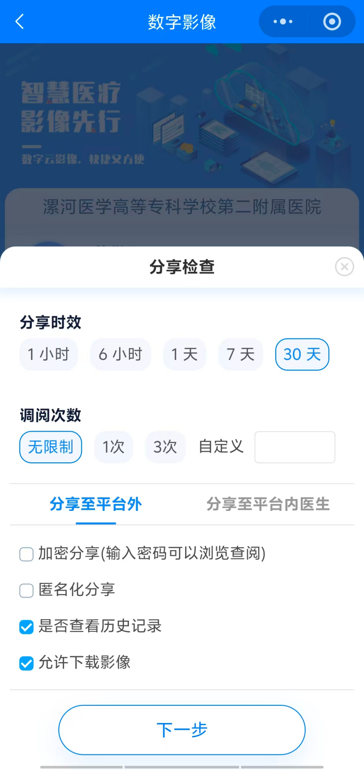 07 點(diǎn)擊“分享檢查”后,可以根據(jù)個(gè)人要求設(shè)置分享權(quán)限,然后點(diǎn)擊“下一步”。