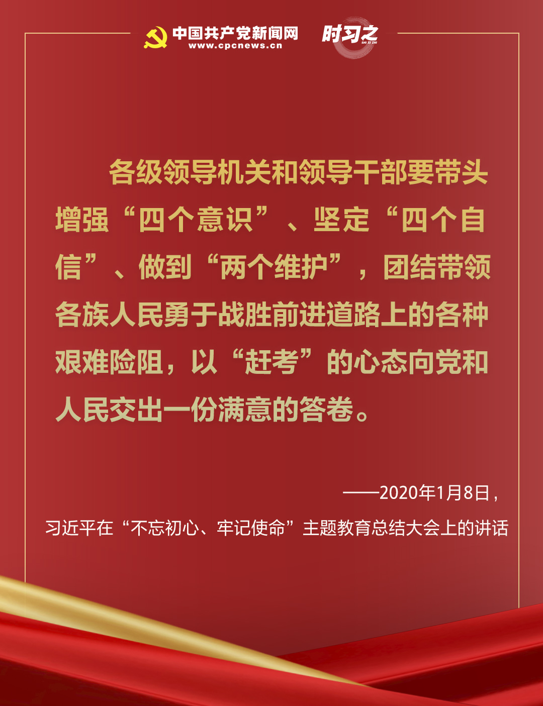 “所有領(lǐng)導(dǎo)干部和全體黨員要繼續(xù)把人民對我們黨的‘考試’、把我們黨正在經(jīng)受和將要經(jīng)受各種考驗的‘考試’考好,努力交出優(yōu)異的答卷。”習(xí)近平這樣要求。