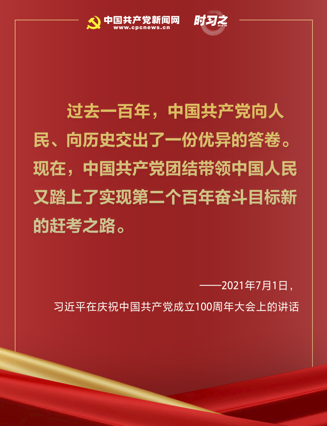2021年7月,建黨百年的輝煌時刻,習(xí)近平總書記在慶祝中國共產(chǎn)黨成立100周年大會上莊嚴宣告,“現(xiàn)在,中國共產(chǎn)黨團結(jié)帶領(lǐng)中國人民又踏上了實現(xiàn)第二個百年奮斗目標新的趕考之路。”