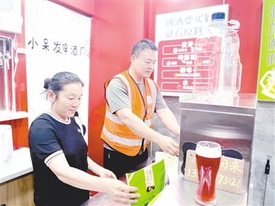 李永鎮(zhèn)、王肖華夫婦在店里售賣精釀啤酒。