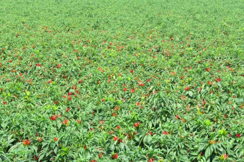種植時采用5G北斗導(dǎo)航無人駕駛機(jī)械進(jìn)行辣椒直播,在直播時播種機(jī)直接播種辣椒種子,同時可同步鋪設(shè)滴管帶、地膜、下種子、一次成型完成辣椒播種任務(wù),一臺辣椒播種機(jī)每天可直播辣椒60畝至70畝,可代替100多人移栽。由于辣椒機(jī)械化直播沒有移栽環(huán)節(jié),辣椒根系發(fā)達(dá),植株健壯,防草驅(qū)蟲,不容易出現(xiàn)死棵爛苗的現(xiàn)象,明顯減少了農(nóng)藥和水的用量。每畝7500穴,每穴雙株,每畝可種植辣椒15000株,省時、省力、省工、省錢而且又高產(chǎn),一般畝產(chǎn)干辣椒800—1000斤,如果管理得當(dāng)畝產(chǎn)突破1000斤是沒有問題的。