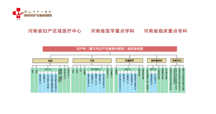 目前,國內(nèi)外大多數(shù)綜合醫(yī)院婦產(chǎn)科僅擁有婦科和產(chǎn)科兩個學(xué)科,而漯河市中心醫(yī)院擁有婦科、產(chǎn)科、生殖、遺傳4個學(xué)科。