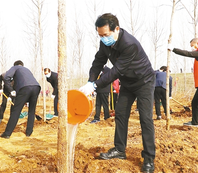 3月12日,市委書記蒿慧杰等同廣大干部群眾一起參加2020年春季義務(wù)植樹活動(dòng)。記者 王慶建 攝