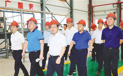 8月7日,市委書記蒿慧杰一行在武漢美好置業(yè)集團江夏區(qū)生產(chǎn)基地考察。記者 王慶建 攝