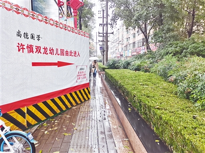 在金江路南側(cè),記者看到圍擋上貼著“華電熱力 溫暖漯河”的宣傳標(biāo)語,但是,圍擋使得這側(cè)道路只剩下一個車道,非機(jī)動車與機(jī)動車混行在一起,看著就不安全。