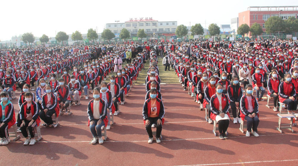 11月6日下午,空冢郭初級中學操場上,人山人海,身著校服的學生一排排整齊的坐在前面,家長們列隊站在后排,放眼望去,可謂是場面壯觀,原來他們是在等著漯河市中級人民法院和《成長紅綠燈》組織的公益普法教育知識講座。