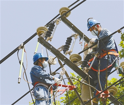 電力施工人員在對(duì)農(nóng)村電網(wǎng)進(jìn)行改造。