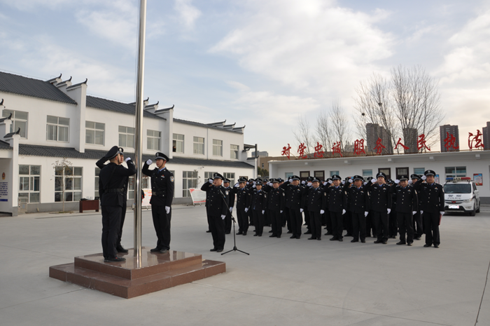 1月10日上午8點(diǎn)30分,分局升警旗儀式準(zhǔn)時(shí)開(kāi)始,三名警旗護(hù)衛(wèi)隊(duì)員護(hù)衛(wèi)著警旗來(lái)到旗桿下,在雄壯的警歌聲中,警旗冉冉升起,60余名民、輔警面向國(guó)旗莊嚴(yán)敬禮。升旗儀式后,全體人員重溫了入警誓詞。整場(chǎng)儀式主題突出、內(nèi)涵豐富,進(jìn)一步弘揚(yáng)了愛(ài)國(guó)主義精神,加強(qiáng)了忠誠(chéng)文化建設(shè),激發(fā)了廣大民警輔警的政治榮譽(yù)感和工作責(zé)任心。