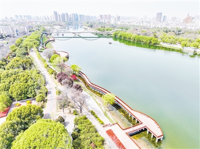 “來(lái)這里可以爬小橋,還能玩沙子,孩子特別喜歡這兒。”3月26日下午,正帶著4歲女兒在小南湖濕地公園游玩的市民徐穎說(shuō)。春天的小南湖濕地公園,新柳萌芽,處處皆景。據(jù)了解,西城區(qū)不僅打通了18公里環(huán)城水系,還建設(shè)了一批特色水系公園,“中原生態(tài)水城”的美譽(yù)在這里得到了直觀體現(xiàn)。