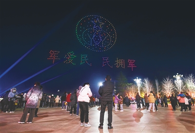 12月3日是周日,晚上8點,沙澧河風(fēng)景區(qū)紅楓廣場,不少市民已經(jīng)在這里等待。伴隨著主持人的講解,千架無人機從沙澧河交匯處升空。夜空中出現(xiàn)了“漯河”“沙澧之源”等字樣。隨后,無人機組成各種圖案。蝴蝶、玫瑰花、金魚、蓮花、銀杏樹等精美的圖案,引得市民歡呼聲不斷。上半場的表演結(jié)束后,8點30分,下半場的精彩表演開始了。雪花、宇航員、仙鶴等圖案給大家?guī)砀囿@喜。