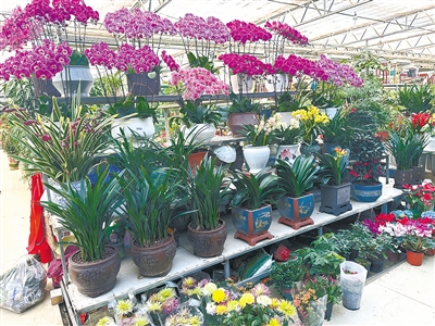 隨后,記者到柳江路金三角花卉市場采訪。市場內(nèi),蝴蝶蘭、發(fā)財(cái)樹、長壽花等顏色明艷、寓意吉祥的花卉被擺在顯眼位置。人們?nèi)宄扇?,在花卉綠植間穿梭、選購。除了鮮花、綠植,一些做工精美、寓意美好的仿真花卉和用仿真花飾做成的福桶也很受歡迎。“福桶是最近幾年興起的,以紅色為主基調(diào),非常喜慶,適合春節(jié)擺在家中,深受消費(fèi)者喜愛。”店主駱先生介紹。