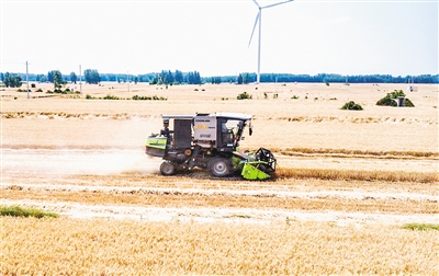5月23日,舞陽縣辛安鎮(zhèn)花張村附近麥田內(nèi),收割機正在收割小麥。王 尊