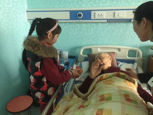 上午9:00志愿者們準(zhǔn)時(shí)抵達(dá)老年公寓,在老年公寓的會(huì)議廳志愿者們?yōu)槔先藗儷I(xiàn)上了精心準(zhǔn)備的節(jié)目,老師的武術(shù)表演、歌曲、舞蹈贏得了老人們的陣陣掌聲,逗得老人們開(kāi)懷大笑。看到老人們幸福的笑臉,志愿者們感到莫大的欣慰與喜悅。演出結(jié)束后,志愿者同護(hù)理人員一起把老人們護(hù)送到他們的房間,黨員志愿者們和老人們親切交流,幫助老人整理房間,打掃衛(wèi)生,給老人梳洗、剪指甲,和老人們聊家常,關(guān)切的詢問(wèn)他們的身體狀況和目前的生活狀況,并把給老人們帶去的糕點(diǎn)一一送到老人手中。