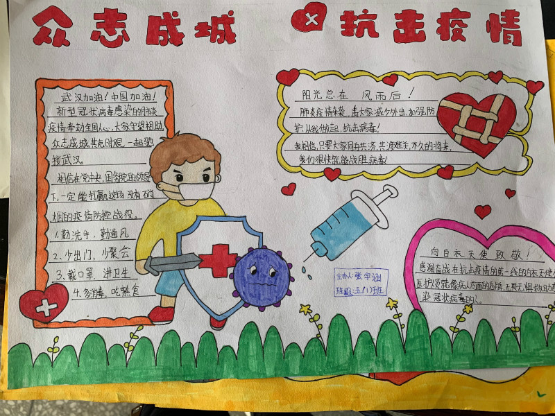老師們精心準(zhǔn)備的“弘揚(yáng)偉大的抗疫精神”的主題班會的教案、課件;學(xué)生收集的感人抗疫小故事;以班級為單位開展了“弘揚(yáng)偉大的抗疫精神”的主題班會,學(xué)生講述的抗疫小故事;學(xué)生在國旗下拳拳的莊嚴(yán)宣誓;學(xué)生鏗鏘感人的抗疫演講比賽;學(xué)生內(nèi)容豐富、栩栩如生的手抄報(bào);全體師生均在活動中談感想,寫反思,無不為中國在世界上樹立一個(gè)負(fù)責(zé)任、有擔(dān)當(dāng)?shù)拇髧蜗螅瑹o不為自己是一名中國人而產(chǎn)生深深的自豪感!