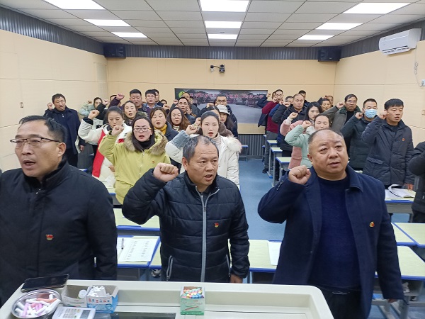 召陵區(qū)教育局主任韓建新給萬(wàn)金鎮(zhèn)全體黨員教師上了思政課