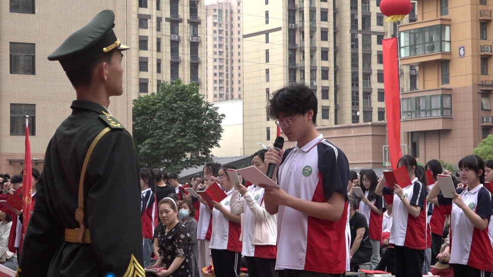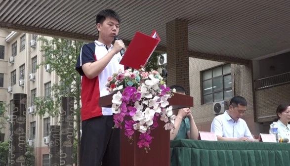 學生代表上前發(fā)言,他的講話發(fā)自肺腑、擲地有聲,道出了全體同學的決心和自信。十載寒窗,百日苦練,何人健步登金榜;一腔熱血,萬丈豪情,我輩英才奪桂冠!