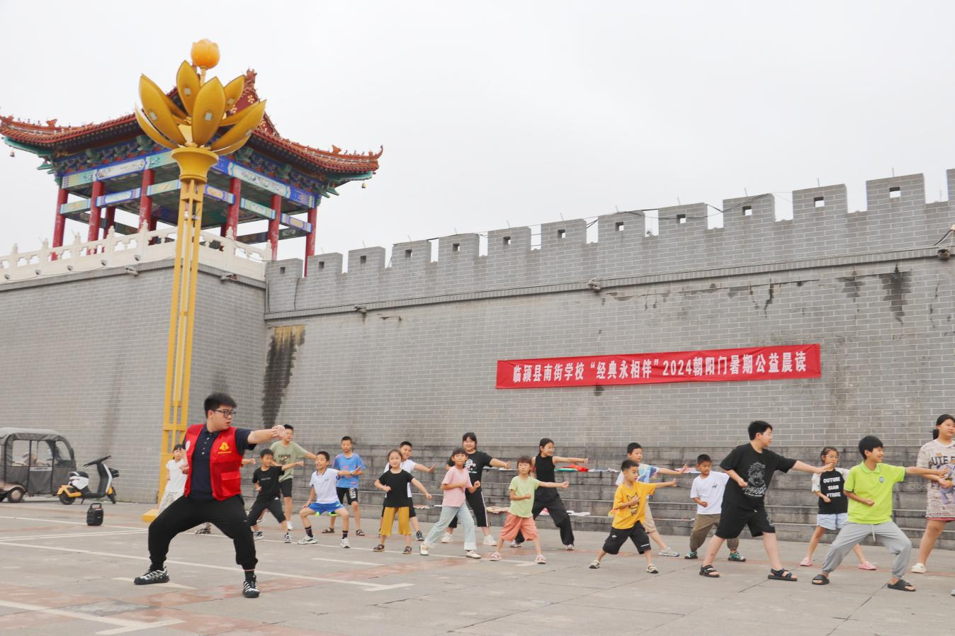 “沖拳!一,哈!二,哈!……”清晨,在漯河市臨潁縣南街村朝陽門廣場激蕩著響亮的口號聲,這聲音整齊劃一、鏗鏘有力,伴隨著氣勢十足的聲音,只見孩子們做出馬步、穿掌、沖拳、踢腿等經(jīng)典的武術(shù)招式,動作有力,虎虎生風(fēng)。