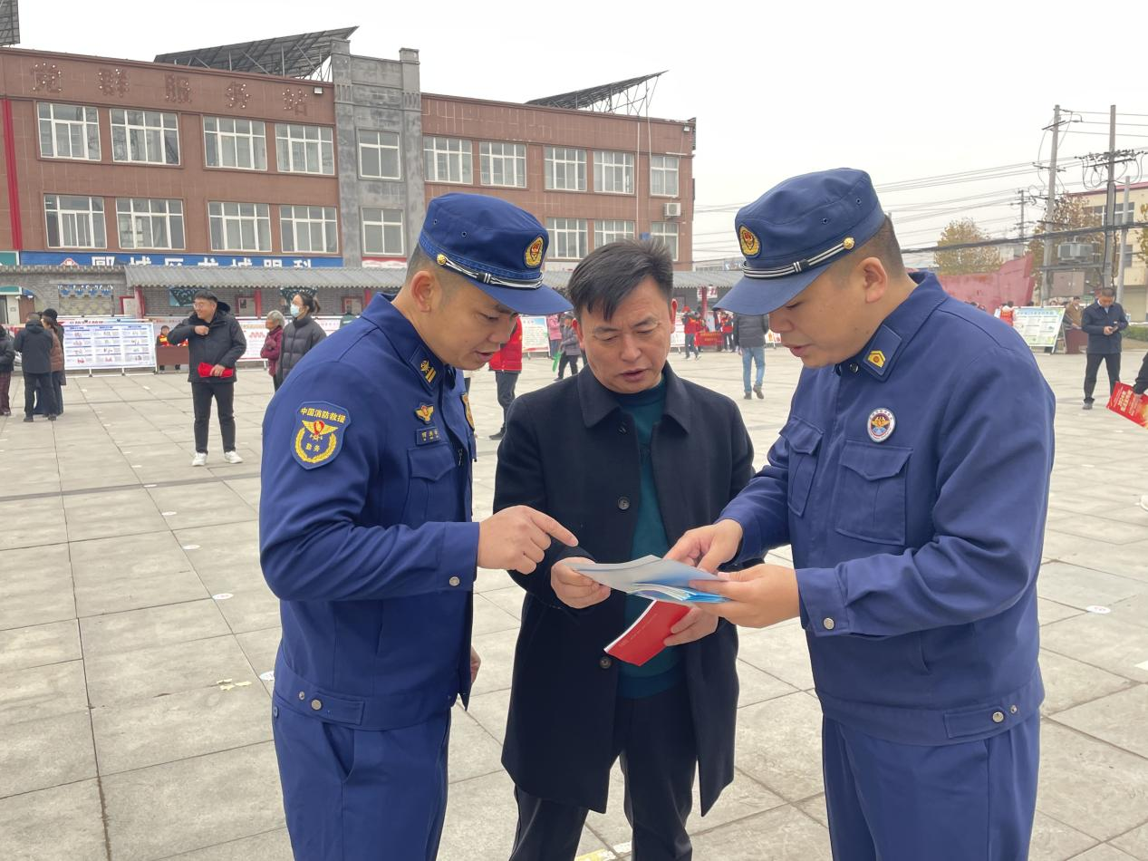 龍城鎮(zhèn)黨委書記李志華向消防救援人員了解相關(guān)法規(guī)