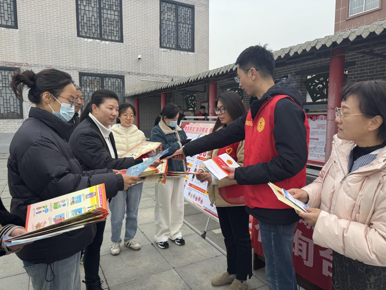 龍城鎮(zhèn)工作人員向群眾贈(zèng)送《憲法》《民法典》《工會(huì)法》