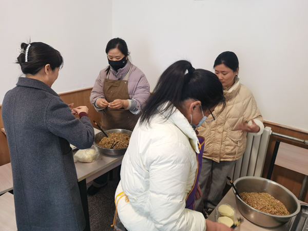 10點半,臺領(lǐng)導(dǎo)和職工代表來到職工餐廳組織包餃子活動。臺工會提前準(zhǔn)備好了20多斤羊肉、豬肉餃子餡,大家分工協(xié)作,有人搟餃子皮,有人包餃子,有人燒水煮餃子,經(jīng)過一個多小時的準(zhǔn)備,一盆盆熱氣騰騰的餃子端上餐桌,大家在其樂融融的氛圍中,度過了一個意義非凡的冬至節(jié)。