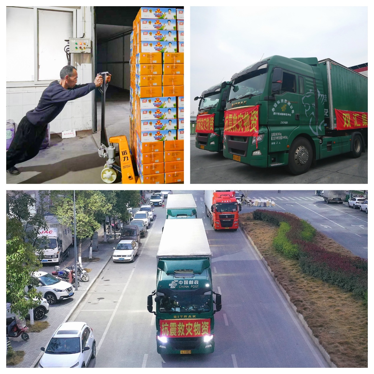 1月12日,雙匯集團(tuán)從四川綿陽(yáng)公司調(diào)撥的1萬(wàn)件火腿腸等食品通過(guò)中國(guó)郵政快遞專(zhuān)車(chē)發(fā)往西藏日喀則市定日縣地震災(zāi)區(qū)。