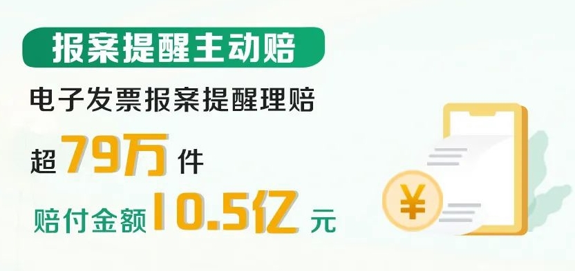 2024年電子發(fā)票報案提醒理賠超79萬件,賠付金額10.5億元。該服務模式相較于傳統(tǒng)的理賠服務模式,大大縮減了理賠服務流程,前置理賠服務的觸點,提升了客戶的服務體驗。