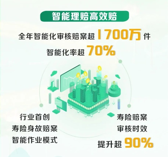 2024年全年,該公司智能化審核賠案超1700萬件,智能化率超70%。行業(yè)首創(chuàng)壽險身故賠案智能作業(yè)模式,符合條件的壽險賠案審核時效提升超90%。