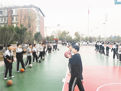 郾城中學(xué)學(xué)生進行籃球訓(xùn)練。記者 張玲玲 攝