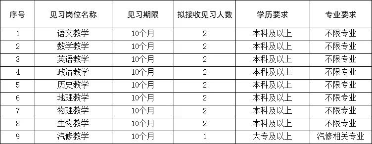 崗位類別:本次提供教育教學(xué)見習(xí)崗位。具體如下: