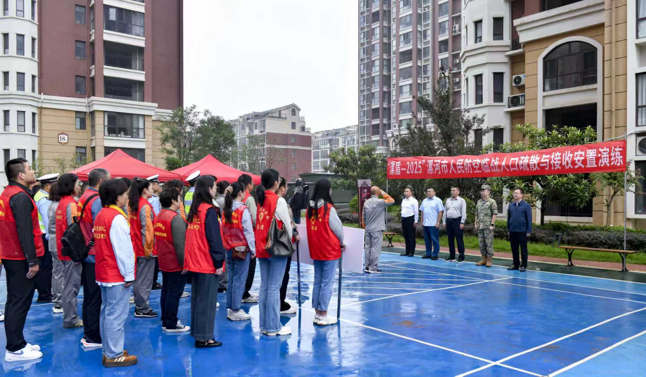 清晨的干河陳街道書香云璟小區(qū),寧靜祥和。9月12日上午9時,隨著演練指揮長、漯河市國動辦主任陳向凡一聲令下,一場高規(guī)格、大規(guī)模的人民防空臨戰(zhàn)人口疏散與接收安置實戰(zhàn)化演練正式拉開帷幕,將這片寧靜切換為一場關(guān)乎人民安全的實戰(zhàn)化考驗。