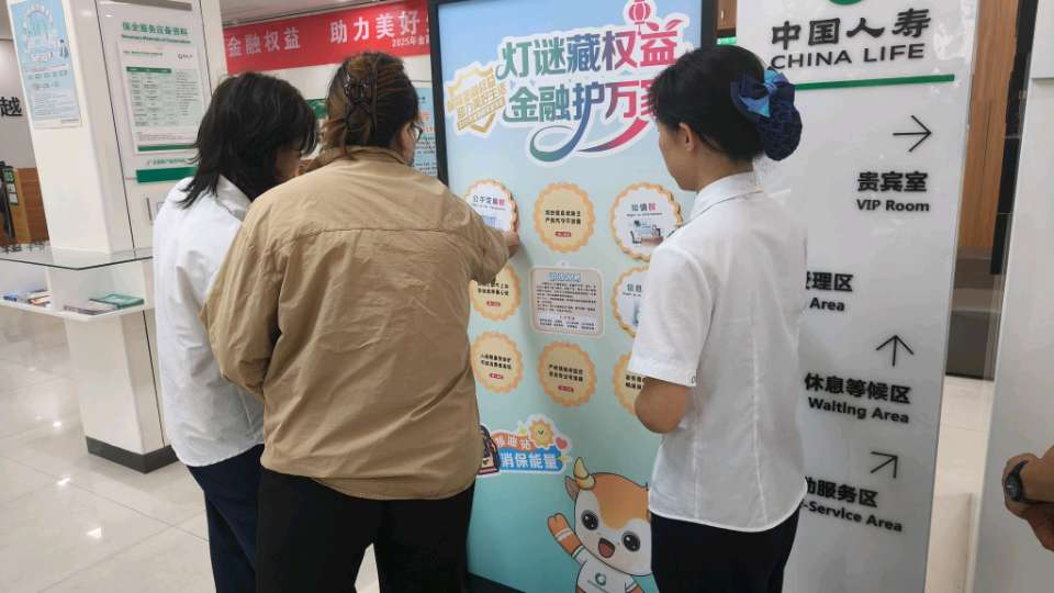 為積極響應(yīng)監(jiān)管部門的號(hào)召,切實(shí)提升社會(huì)公眾金融素養(yǎng),守護(hù)金融消費(fèi)者合法權(quán)益,在2025年9月15日至21日金融教育宣傳周期間,中國(guó)人壽壽險(xiǎn)漯河分公司在黃河路柜面消保教育宣傳基地設(shè)置“消保能量加油站”宣傳專區(qū),開(kāi)展“燈謎藏權(quán)益,金融護(hù)萬(wàn)家”活動(dòng)。