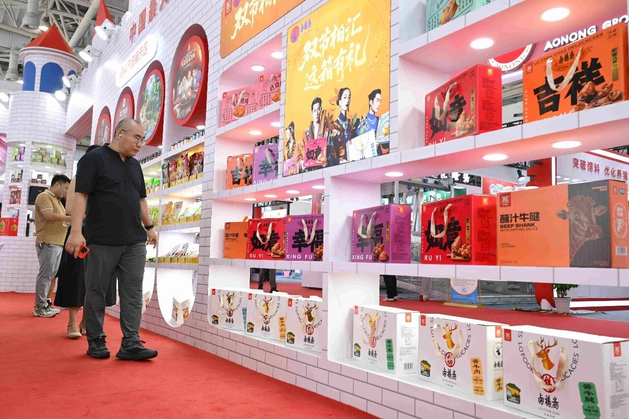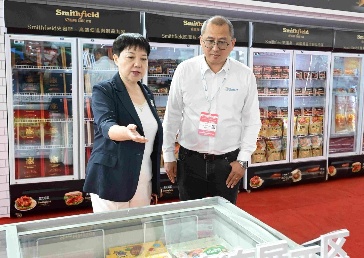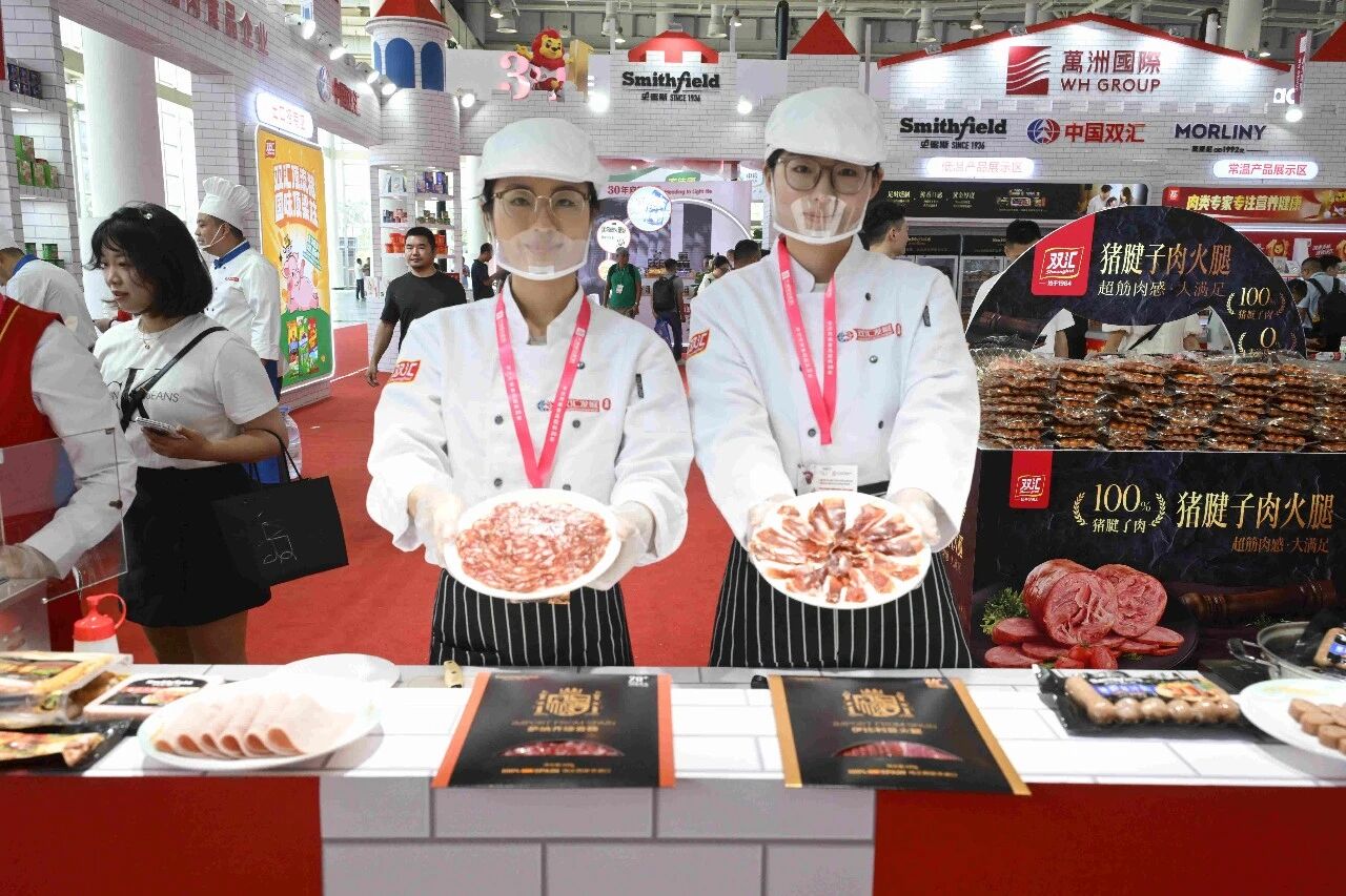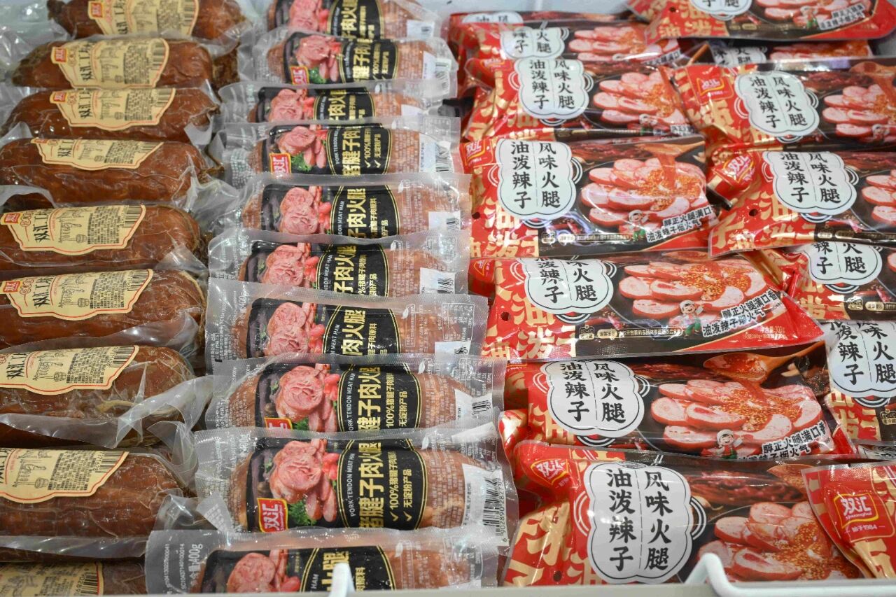 雙匯展廳內(nèi)的展品琳瑯滿目、品類豐富,我們可以看到企業(yè)對肉類美食的探索,早已從“一支火腿腸”拓展出更多可能。僅肉制品就涵蓋了簡頌午餐肉、金沙蛋黃腸、豬腱子肉火腿、富樂鹵味腸等特色產(chǎn)品系列,焦香蜜汁腸、塞納諾火腿、山核桃木煙熏原切培根、薩納齊瓊香腸等史蜜斯系列,玉米肉棗腸、脆骨肉條香腸、火爆小郡肝等匯小鋪零食系列,鹵福齋中式產(chǎn)品禮盒系列,招牌面、香菇雞丁米線、酸辣粉等方便速食系列。