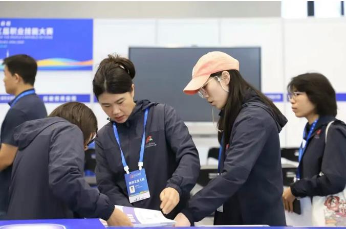 選派裁判員、賽項(xiàng)聯(lián)絡(luò)員及場地經(jīng)理、賽務(wù)保障人員199人提前一周趕赴鄭州,在賽場搭建、場地布置、技術(shù)支持等方面傾情助力。選拔培訓(xùn)6名賽項(xiàng)解說員全程駐守,解說賽項(xiàng)、“聲”動(dòng)賽場,幫助社會大眾進(jìn)一步了解國賽、關(guān)注技能人才。