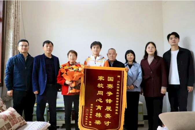 抵達選手家中后,院領導首先向家長和選手遞上紅彤彤的錦旗與沉甸甸的慰問品,“孩子能站上全國賽場拿獎牌,離不開家里的支持,也離不開學校的培養(yǎng),這是咱們共同的驕傲!”一句真摯祝賀,瞬間拉近了家校距離。