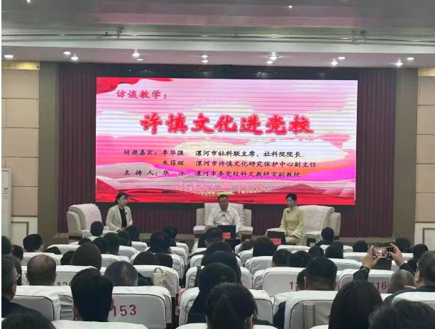 為深入學(xué)習(xí)習(xí)近平文化思想,貫徹落實(shí)中央和省委、市委關(guān)于文化建設(shè)的工作部署,推動(dòng)我市“四大本土文化”創(chuàng)造性轉(zhuǎn)化、創(chuàng)新性發(fā)展,11月6日上午,市社科聯(lián)主席、社科院院長(zhǎng)李華強(qiáng),市許慎文化研究保護(hù)中心副主任朱菲輝受邀走進(jìn)黨校秋季學(xué)期第二期主體班課堂,開展了“許慎文化進(jìn)黨校”專題訪談教學(xué),市委黨??萍嘉幕萄惺腋敝魅?、副教授華冰主持。