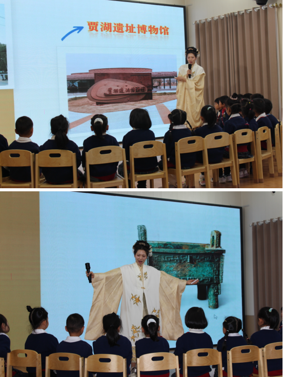 漯河市藝術幼兒園魏偉老師執(zhí)教的教學活動《假如文物會說話》,以賈湖骨笛、后母戊鼎等文物為線索,通過聆聽八千年骨笛聲音、“文物回家”地圖互動等活動,讓幼兒觸摸文化根脈、增強民族自豪感,踐行“資源強德”路徑。三節(jié)教育活動摒棄說教、善用共情,將思政元素與游戲、體驗深度融合,盡顯“隨風潛入夜,潤物細無聲”的教育智慧。