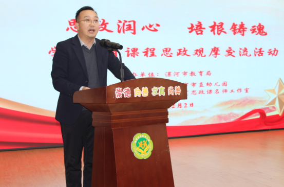 漯河市教育教學研究室政治教研員、市大中小學思政課一體化建設委員會秘書長夏忠新進行專業(yè)點評。他講到本次活動亮點突出、成果豐碩,高度評價市直幼兒園的思政教育實踐為全市學前階段開展思政教育活動樹立了標桿。高林霞園長的專題分享破解了思政教育在幼兒園開展的落地難題和困境。三節(jié)集體教育活動則提供了可學習、可復制的實踐范本。夏忠新提出三點期許:一是守初心,錨定幼兒品德啟蒙核心;二是重銜接,構建大中小幼思政課一體化建設橋梁;三是勇創(chuàng)新,深挖漯河紅色教育與本土文化資源,讓思政教育更鮮活、更入心。