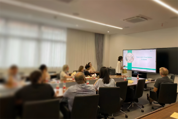 圖:工作人員為寧波某學(xué)校外籍教師講解保險(xiǎn)保障方案
