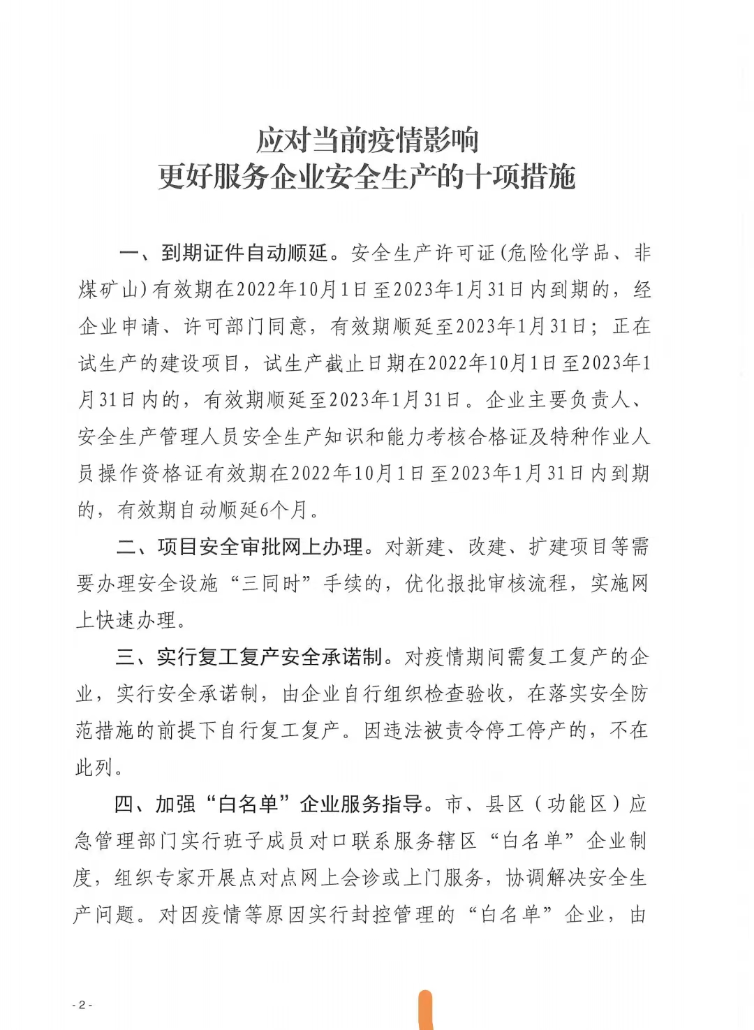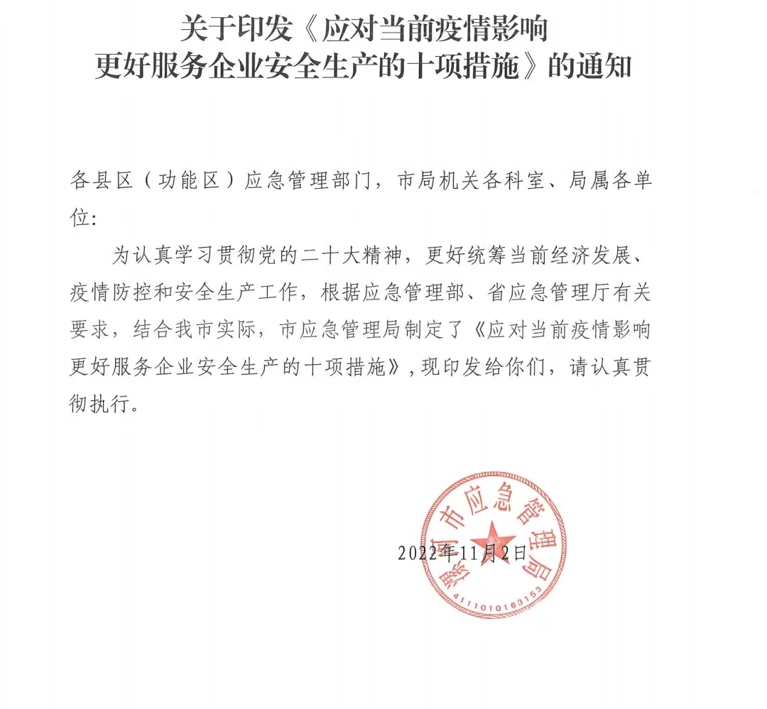 關于印發(fā)《應對疫情影響更好服務企業(yè)安全生產的十項措施》的通知
