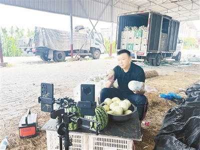 “這種甜瓜在地里長(zhǎng)100多天成熟,瓜皮和瓜瓤都能吃,喜歡的可以下單了……”7月20日中午,臨潁縣石橋鄉(xiāng)王莊村黨支部書(shū)記方永杰正在直播賣甜瓜、冬瓜、西瓜。樸實(shí)又充滿激情的直播,一開(kāi)始便吸引很多老客戶和周邊群眾的關(guān)注,一小時(shí)賣掉2000多斤瓜。