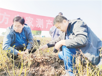 專家對史渡口村的“漯花20”花生百畝示范方進行測產(chǎn)。