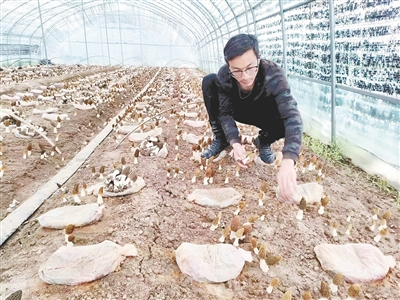 大棚里,清新的菌香混合著泥土的氣息撲面而來(lái)。種植戶陳陸野一步一彎腰,小心翼翼地將一朵朵“金傘傘”摘下裝入筐中??粗鴤€(gè)大飽滿、紋理清晰、菌柄肥厚的羊肚菌,他的臉上樂(lè)開(kāi)了花。