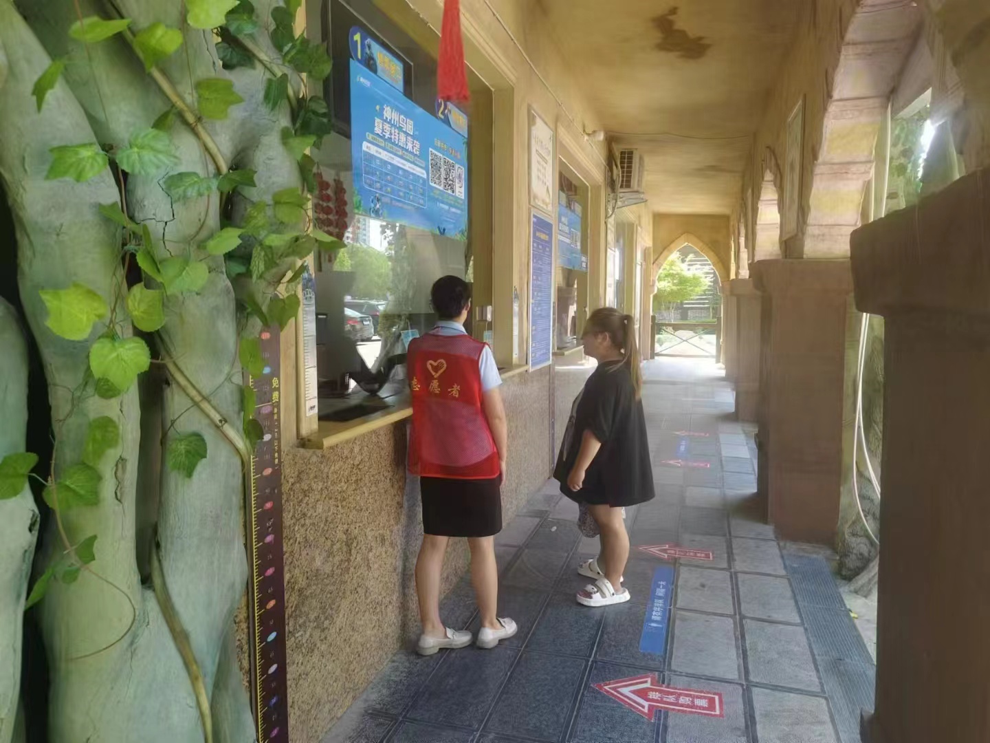 8月9日,神州鳥園志愿者在為游客講解服務(wù)。