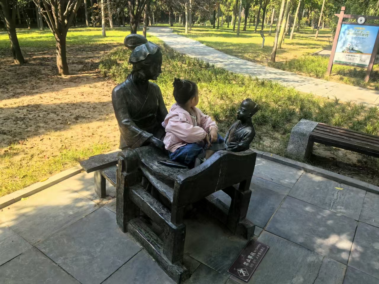 國(guó)慶假期,在許慎文化園仍有小孩攀爬的不文明行為。