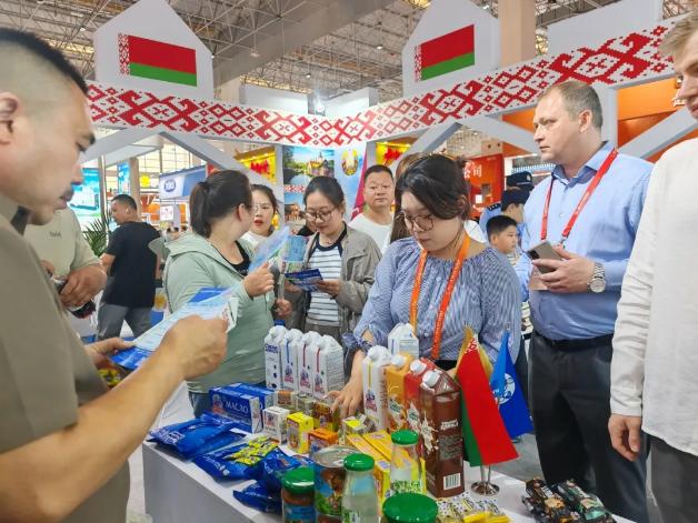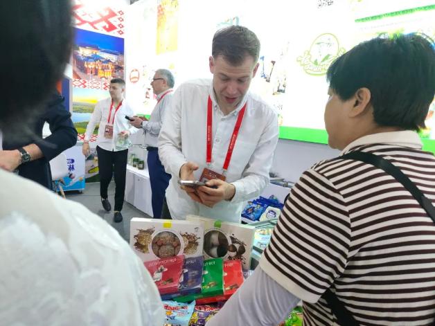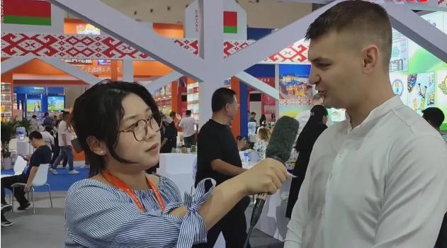 在白俄羅斯的展區(qū)前,記者通過中方的翻譯,在待等了一段不短的時間后,終于采訪了一直忙碌交流的、來自白俄羅斯莫吉廖夫州自由經濟區(qū)比霍夫罐頭廠有限責任公司的代表維塔利先生。