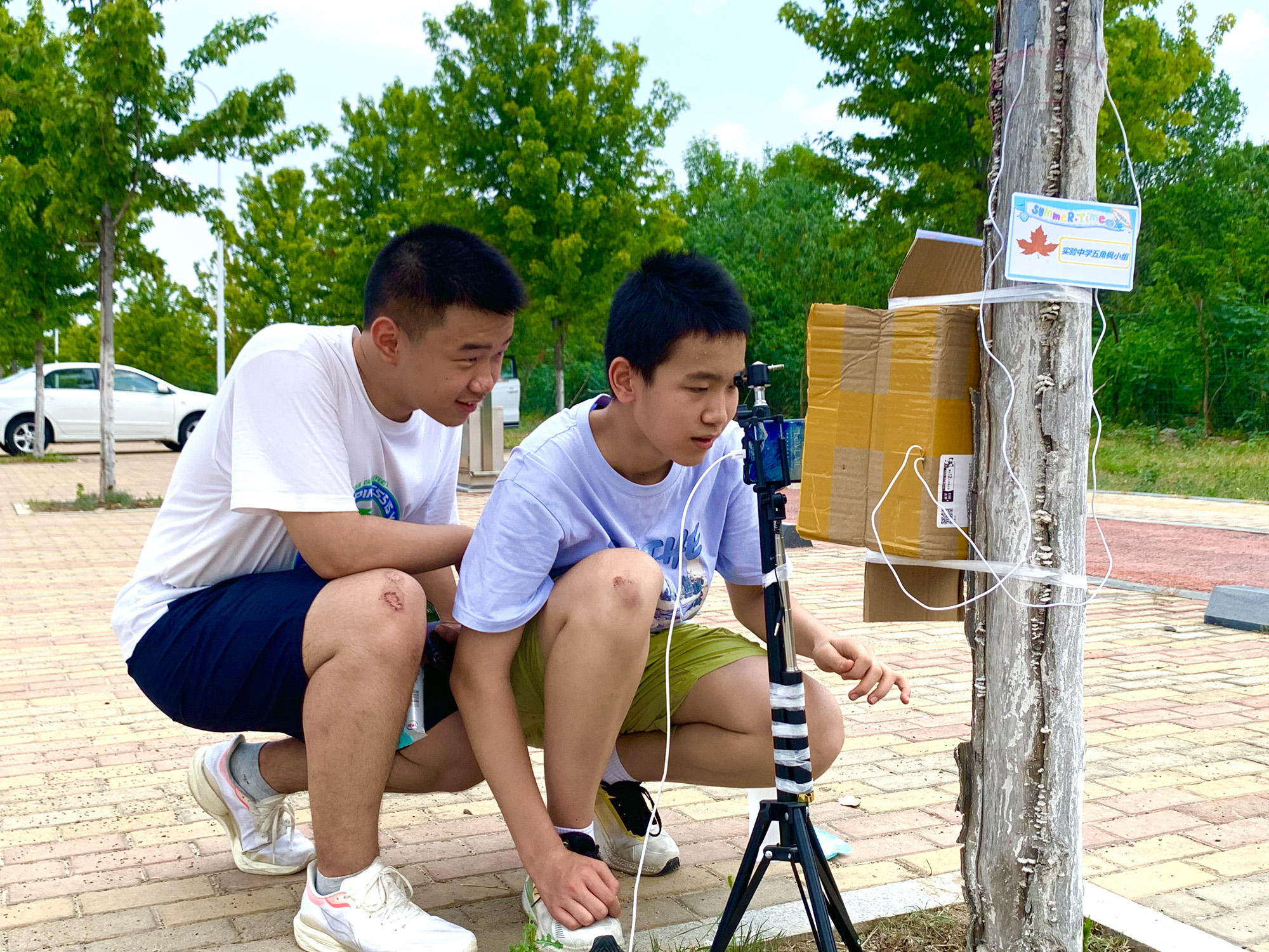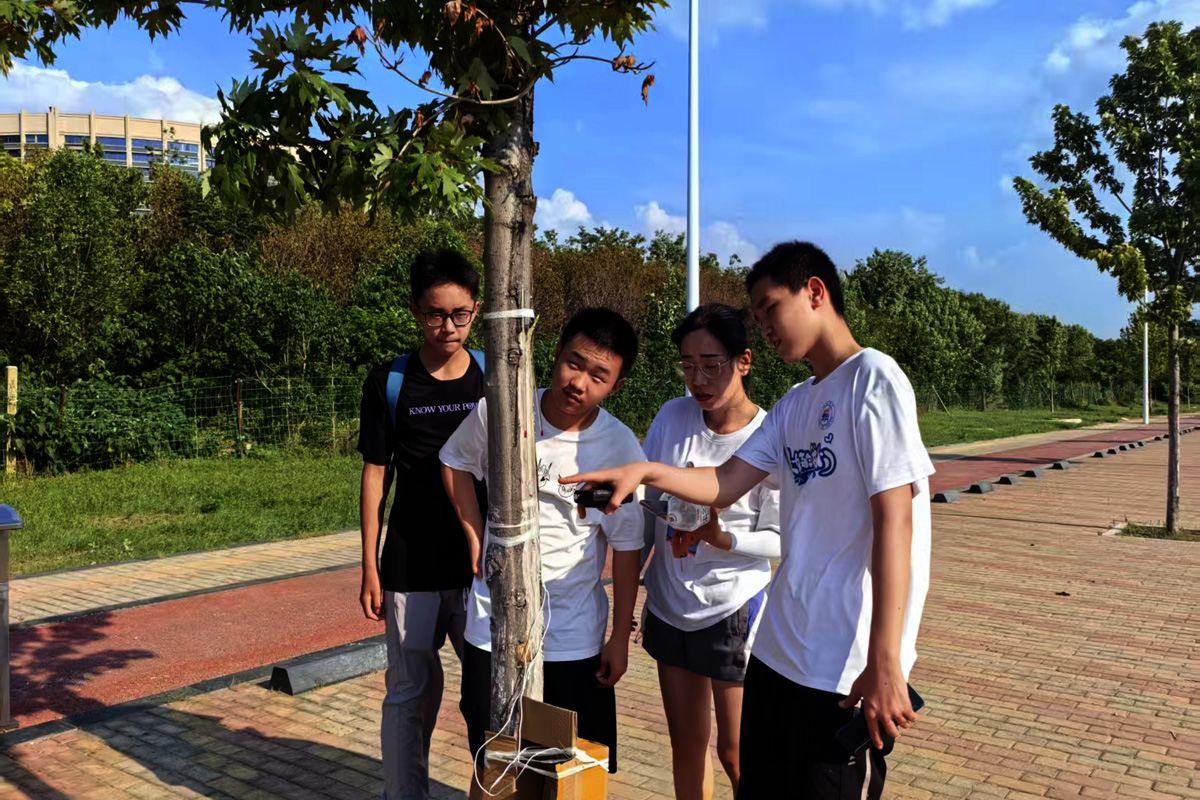 7月18日午時(shí),西城凌云山路,40℃的高溫炙烤著大地。在炎炎烈日下,兩個(gè)稚嫩的少年正蹲在一棵小樹(shù)前,手里拿著儀器,專(zhuān)注地觀察著什么。刺眼而毒辣的陽(yáng)光灑在他們的身上,他們卻仿佛感覺(jué)不到炎熱與不適。